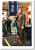 Att förmedla ett budskap till en mässpublik och samtidigt underhålla dem.